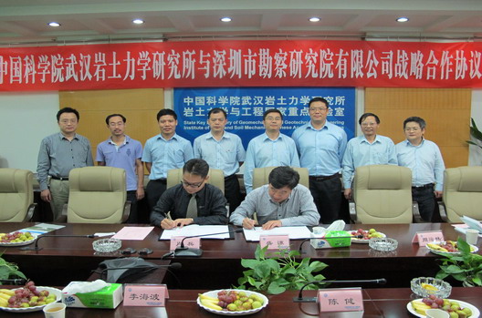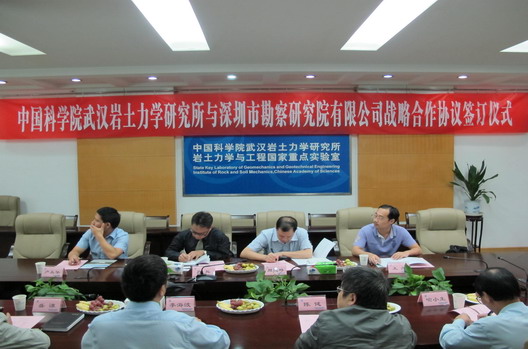10月16日,中国科学院武汉岩土力学研究所与深圳市勘察研究院有限公司在武汉召开了科技交流、院企合作座谈会,并签署战略合作框架协议。岩土所李海波所长、科研计划处焦玉勇处长、陈健研究员、深圳工勘副总经理肖兵等出席了座谈会和签约仪式。座谈会由岩土所副所长盛谦主持。