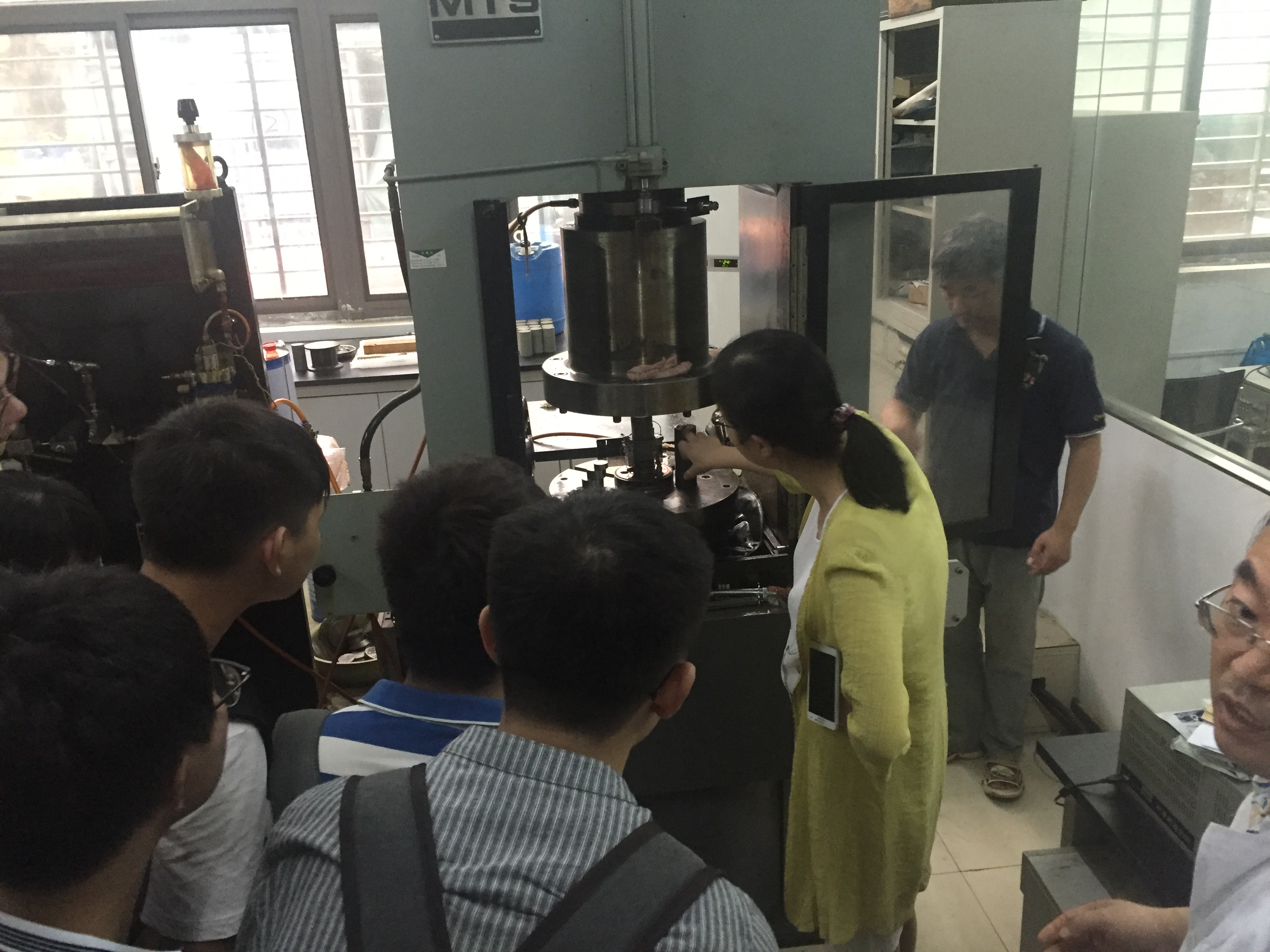 2017年6月23日,武汉理工大学“陈宗基岩土工程菁英班”的50余名大三学生来到中国科学院武汉岩土力学研究所,开展实验教学交流活动。岩土力学与工程实验测试中心的工作人员带领同学们参观了岩土所先进的试验设备和优越的实验平台,重点讲解了土的物性实验、土三轴仪、MTS、RMT等设备的功能指标、工作原理、操作方法,并现场演示了土三轴压缩、岩石单轴压缩和直剪实验,老师们对实验原理、实验步骤、数据处理、结果分析等方面进行了详细的讲解。
