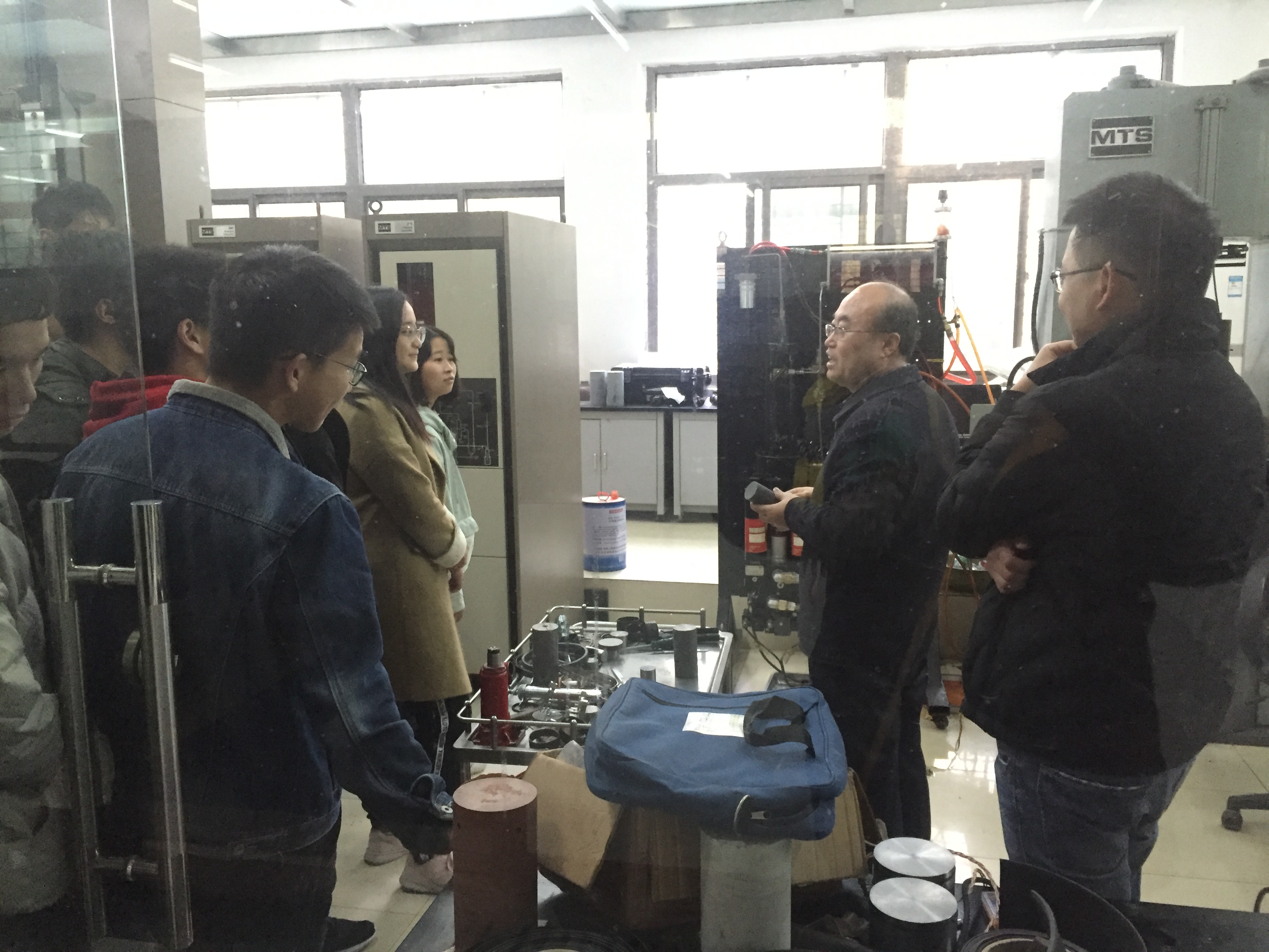 2018年11月26日,武汉轻工大学的20余名学生来到中国科学院武汉岩土力学研究所,开展实验教学交流活动。岩土力学与工程实验测试中心的工作人员带领同学们参观了岩土所先进的试验设备和优越的实验平台,重点讲解了土的物性实验、土三轴仪、MTS、RMT等设备的功能指标、工作原理、操作方法,并现场演示了土三轴压缩、岩石单轴压缩和直剪实验,老师们对实验原理、实验步骤、数据处理、结果分析等方面进行了详细的讲解。